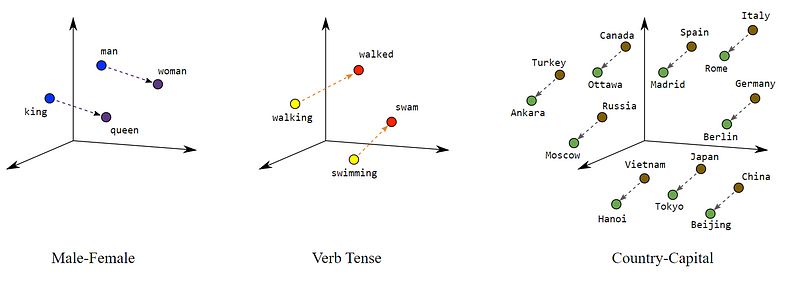 This machine learning technique models words as vectors in multidimensional space based on how they are used in massive text training datasets. Trained models can be used to quantitatively measure the difference between the meaning of two words (or sentences).